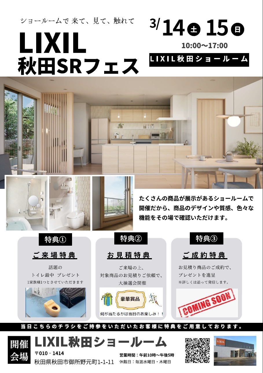 ■ 2021/3/20【LIXIL秋田ショールーム臨時休館のお知らせ】